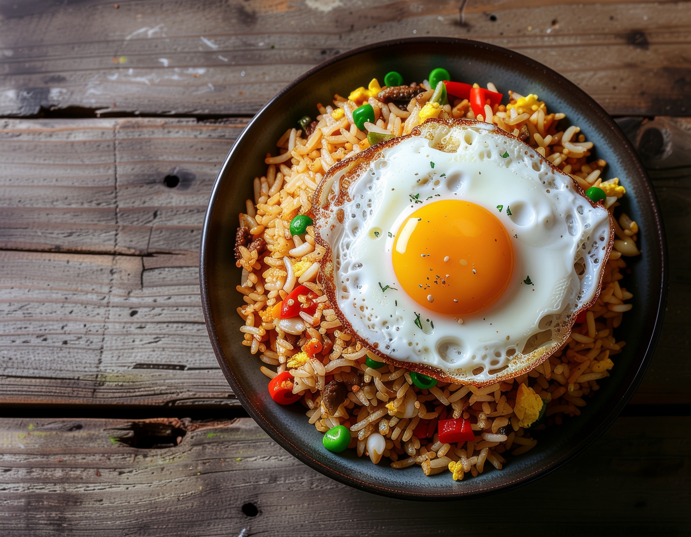 Stegte ris er en favorit blandt de sarte maver og børnene på besøg i Thailand. Eller bare en nødvendig pause fra det stærke mad. Jeg har endnu ikke mødt nogen der ikke har elsket stegte ris. Det er nemt, hurtigt og simpelt at lave og det smager fantastisk. Spejlægget på toppen er ikke noget man normalt får i Thailand, men jeg syntes det giver retten lidt ekstra. I Thailand er stegte ris en klassisk morgenmad eller frokost. Den bliver selvfølgelig også spist som aftensmad – men så spises den alene. Stegte ris er ikke et alternativ til alm. hvide ris. Det er en selvstændig ret.